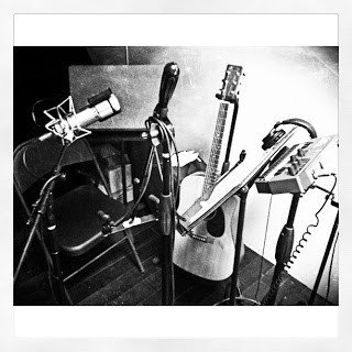 My set up was a lot more simple. I sat in a corner of the studio by the door with a condenser mic for vocals and a stereo mic for the guitar. I had my music sheet holder and monitor to my left. Everything would be recorded live. No over dubbed vocals or running the guitar through an amp. Everything live. We would be recording as we rehearsed, sitting across from each other so we could make eye contact if needed. After running through a song a few times and making minor adjustments we were recording in just under an hour after walking in the door.