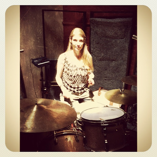 | Daniela and her drums steal the only sunlight. |