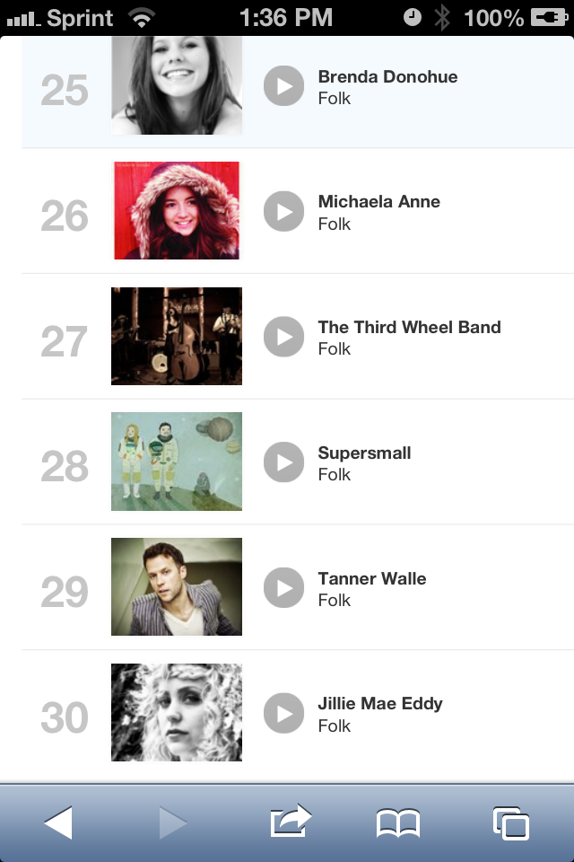 Not that it matters in the grand scheme of things but we have found great amusement in seeing our band rise up the Revebnation Folk Charts. Breaking the top 40 resulted in us receiving some cool (and free) promotional offers which we’ve already used. Now were at #28. It’s fun checking this now and again. Yes, we know we’re being silly.
