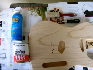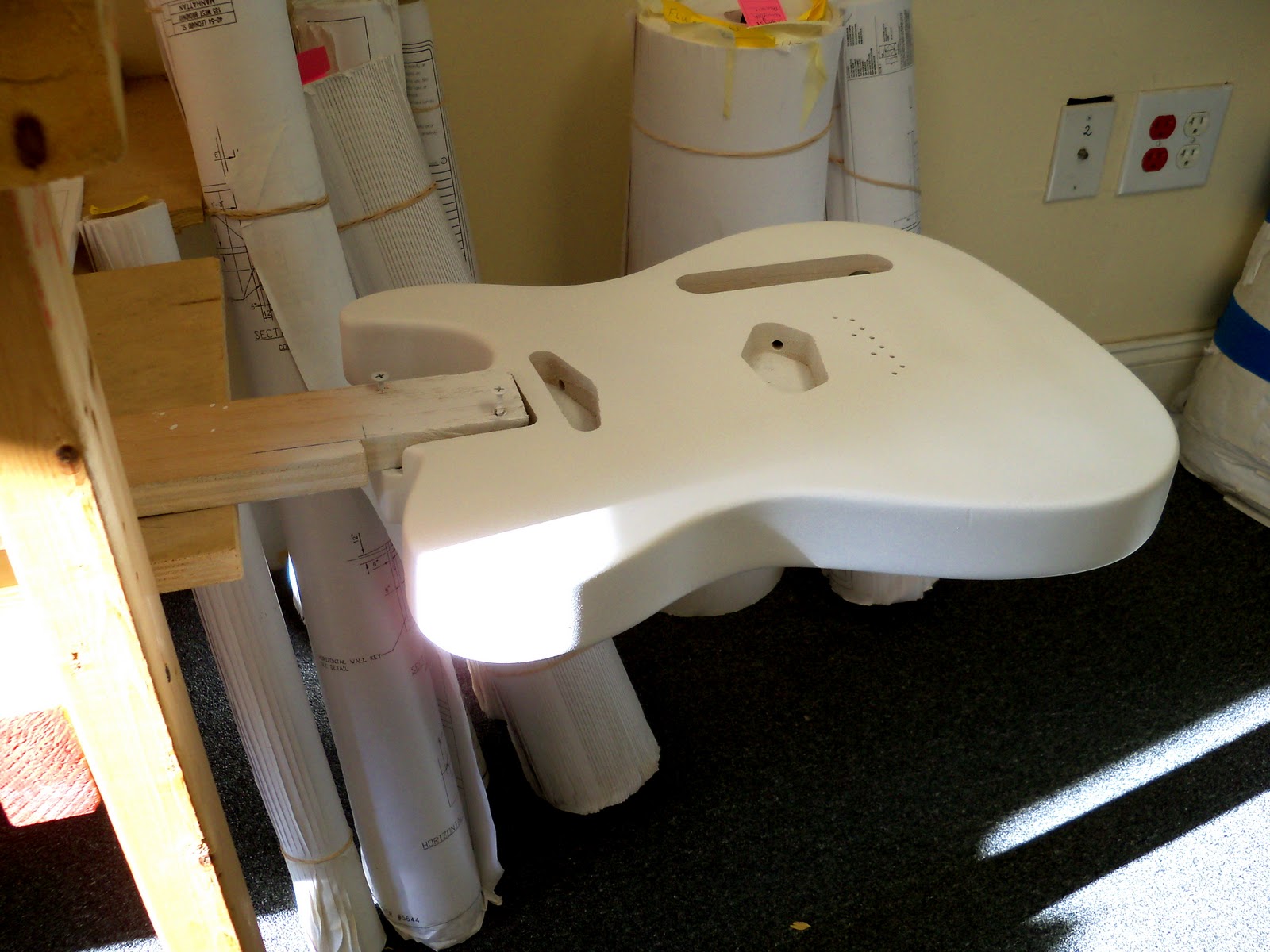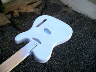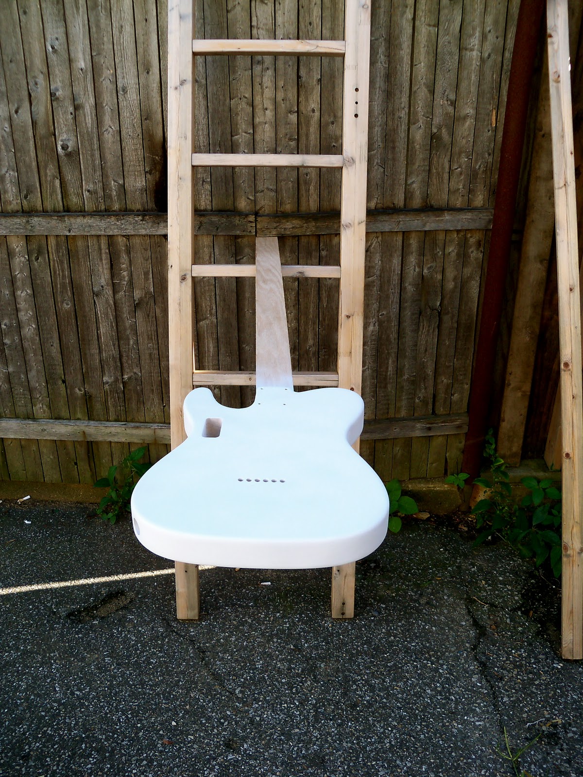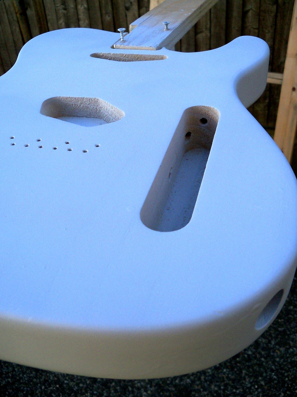 Primer was the first to be applied so as to give the guitar a good base to start from.