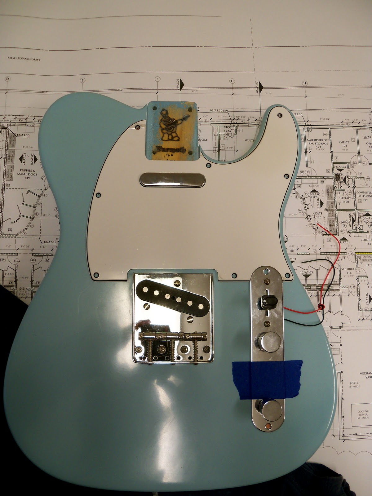 I brought all my parts and equipment into work and proceeded from this point on building the Telecaster on my lunch break or after work . It was a long slow process of progress in small parts. Some days I was too busy while others I stayed back up to two hours. Some days I got a lot done, others I set my self back to square one.