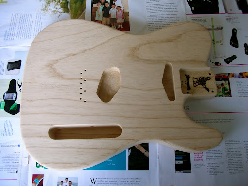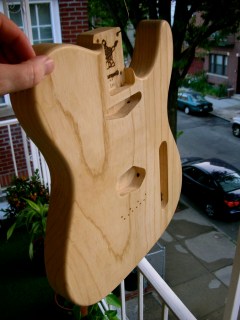 My first purchase was a single piece of Swamp Ash. I got it pre-drilled due to my total lack of drilling facilities at my New York apartment/office. This particular piece was ordered from Warmoth.com